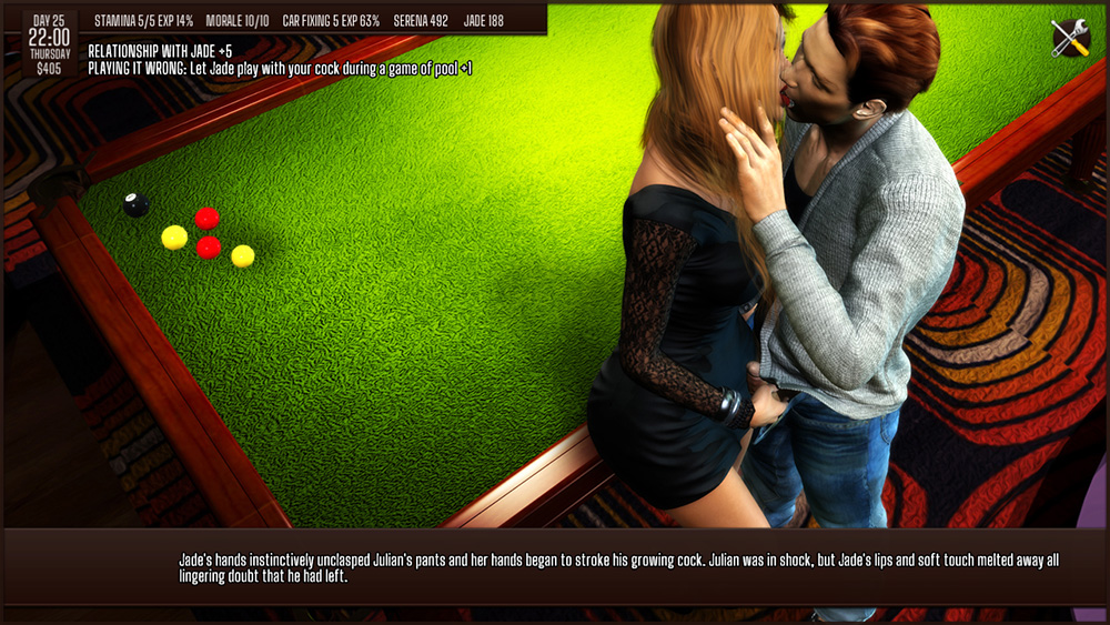 Just like in real life, characters have a daily schedule that they follow. If you want to cook dinner with Serena, you will need to meet her in the kitchen around 17:00, or, if you want to join her under the shower, you will need to step in when she is getting ready for sleep. But this isn’t as easy as you may think: more arousing interactions require a higher level of your relationship, and, as long as things remain strained, satisfying your desires won’t be her priority.