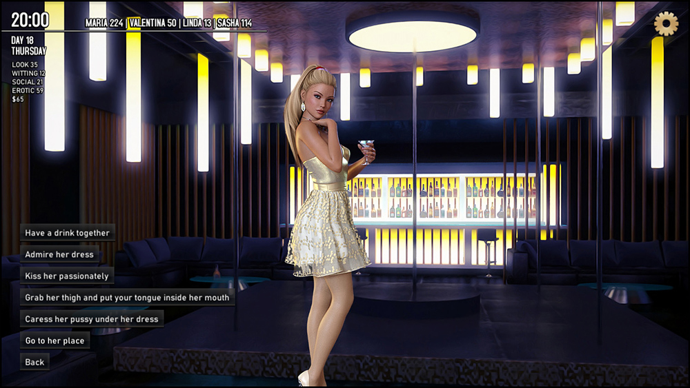 Having played through the game, a few places I thought some little scenes could be are like the park. Valentina rubs her ass against you, but then nothing. Could sneak behind a tree for sex, same with Linda. Also kind of on the same line at the shop, there are changing rooms and you’ve utilized them in games like LWS. The bistro scenes where they play with cock could be the same as well, maybe feet under the table, or someone gets on their knees. I would have liked to have seen the average number of scenes for all be higher, rather than so many for Maria.