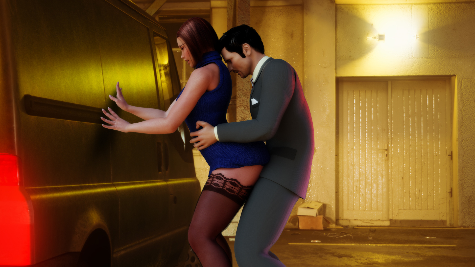 • Wild adventure with Tara outside the pub during which she will let Harry fuck her in the public, just next to the huge van parked in front of the pub entrance. Do it quick and cover her face with your hot cum or ejaculate inside her ass while being watched by Ruby.