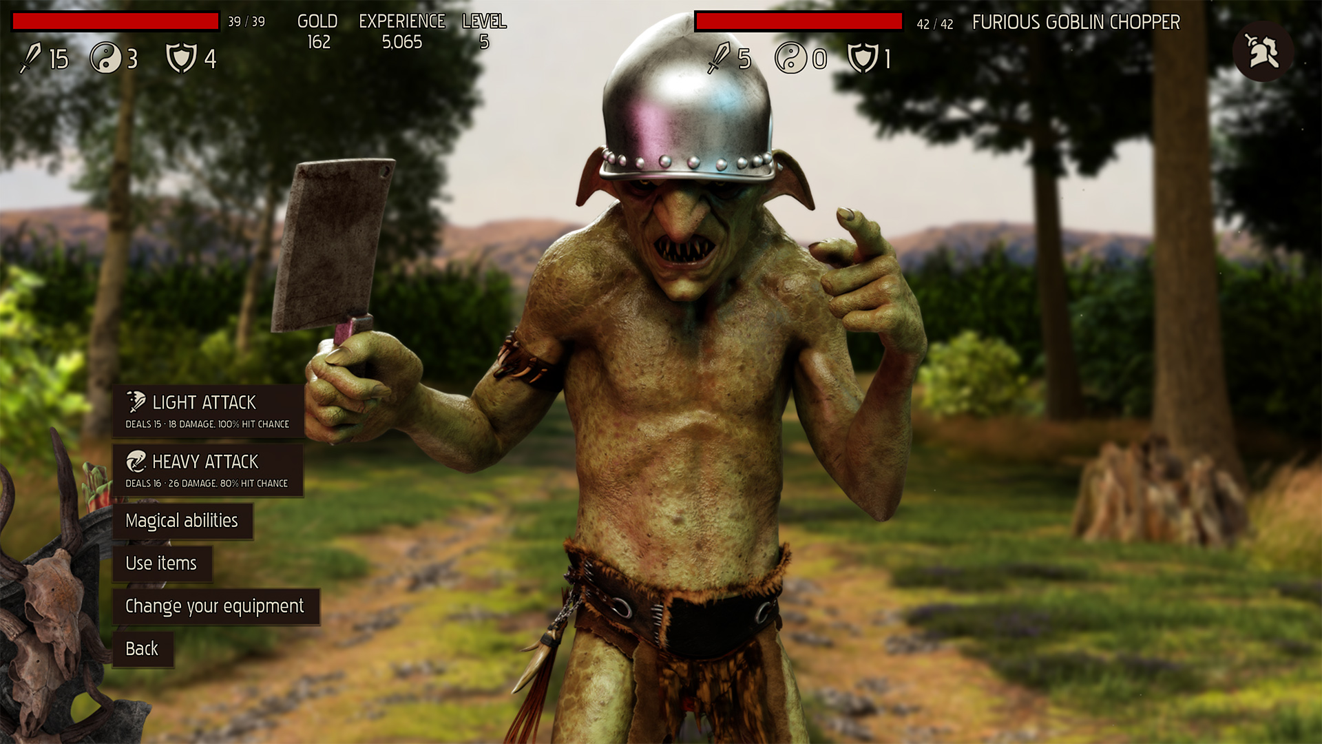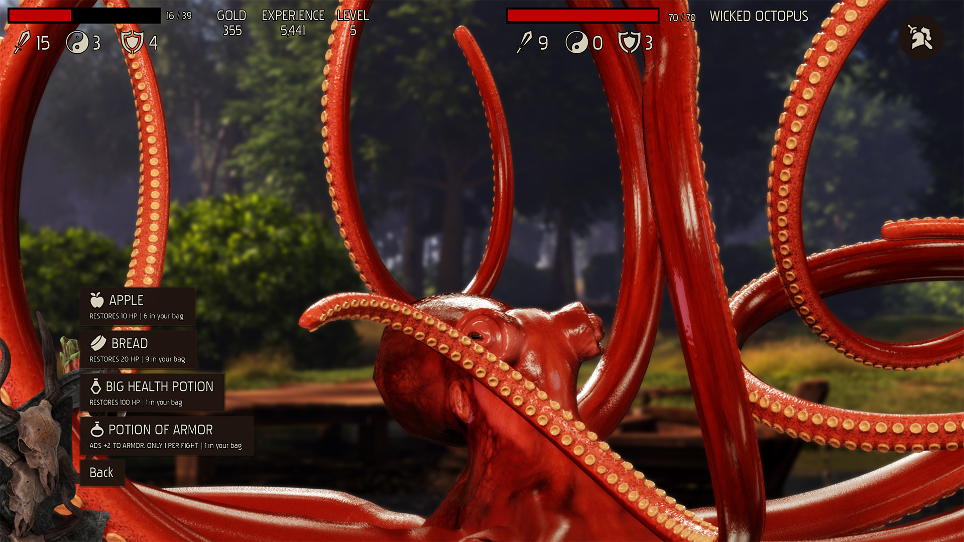We try to keep it simple - 3 key stats such as STRENGTH, MAGIC and ARMOR, which will be boosted by the equipment you're wearing. Also, you'll be able to use consumables such as healing potions and stuff during combat.