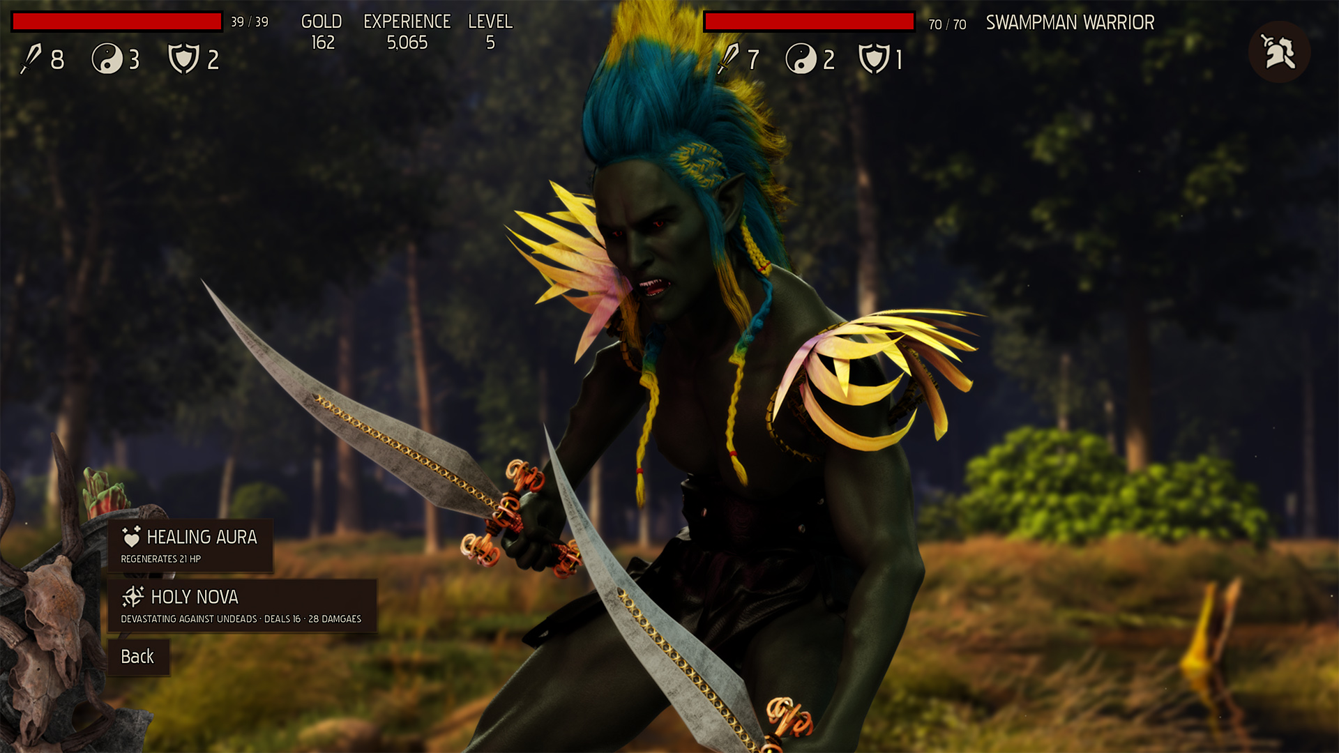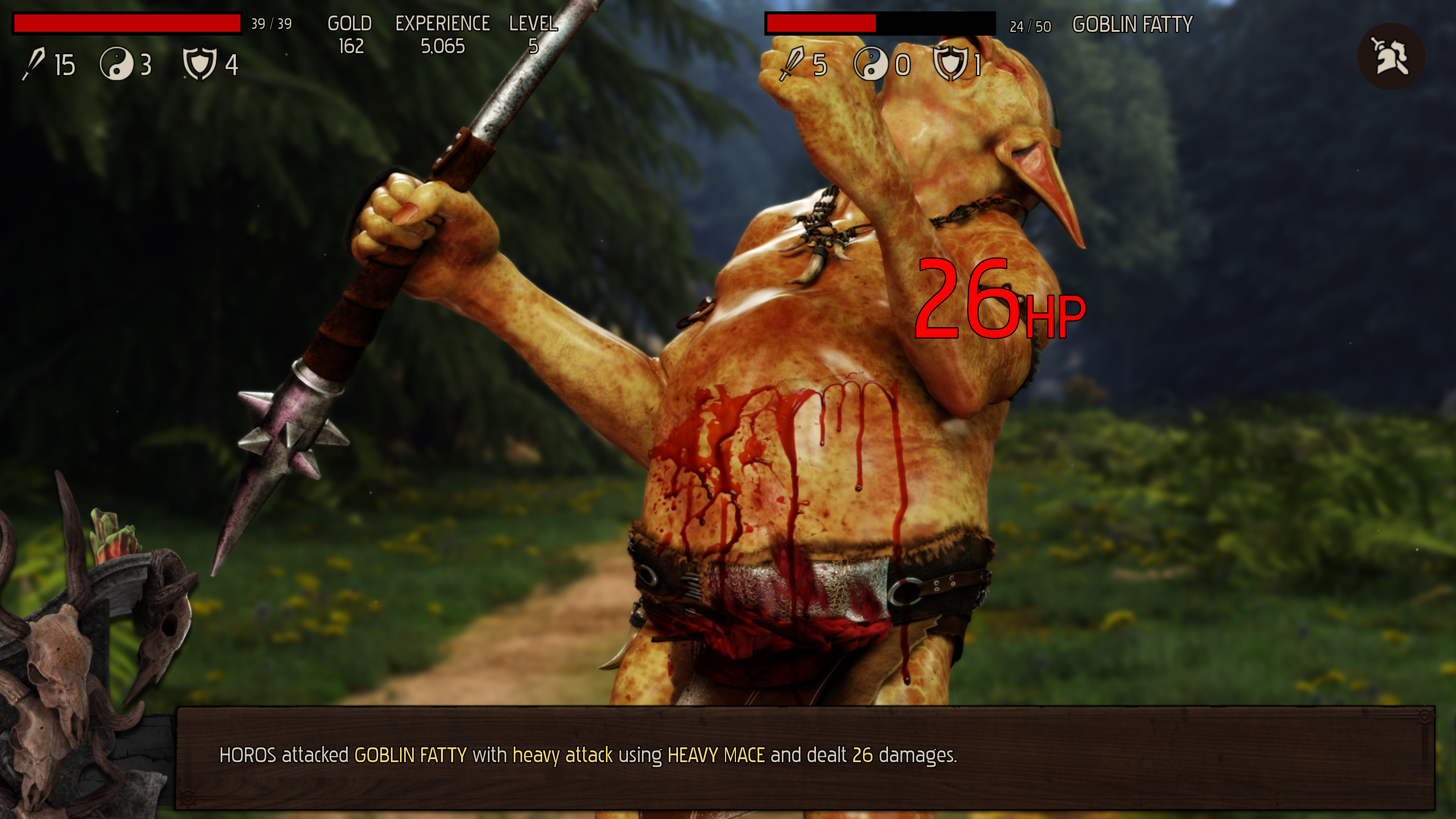 We'll have level progression like in the ALMOST NOBLE HERO - with every new experience level achieved, you'll get more bonuses to your base stats, and you'll learn new skills - both physical as well as magical. In total, HOROS could learn 15 skills, but we'll probably add more in further expansions. Skills like HOLY NOVA, HEALING AURA, MUTILATION, VAMPIRE KISS, CORRODING SPARKS, etc.