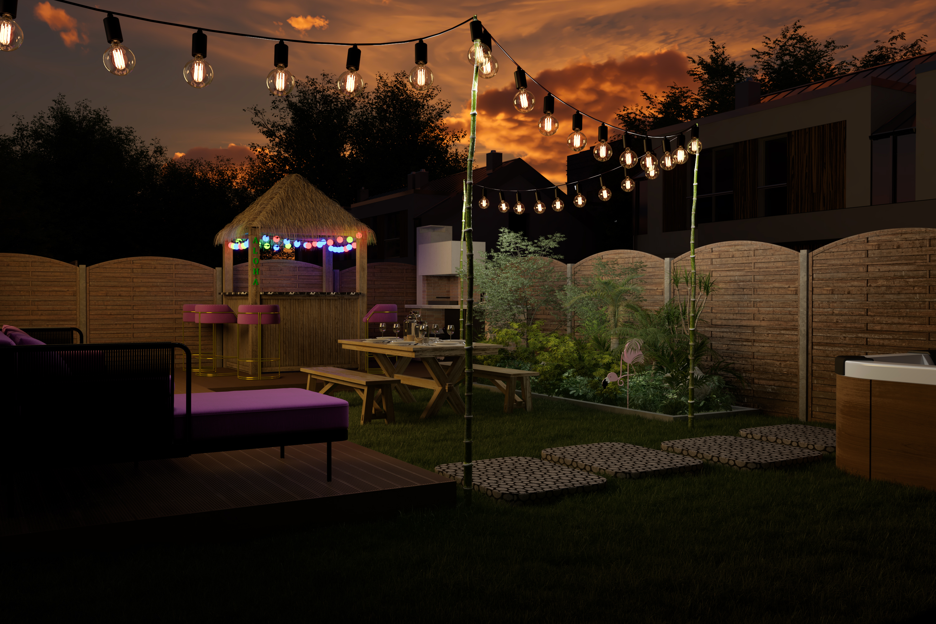 • Garden with a tropical bar, jacuzzi and pool just behind the fence - Tracy will have a new neighbor.