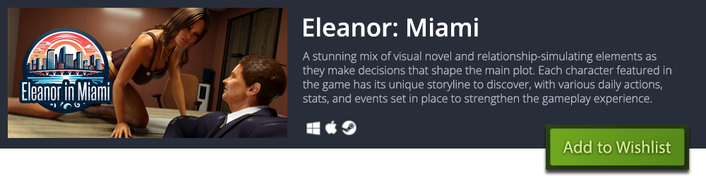 Wishlist ELEANOR IN MIAMI on STEAM to get notifications and updates.