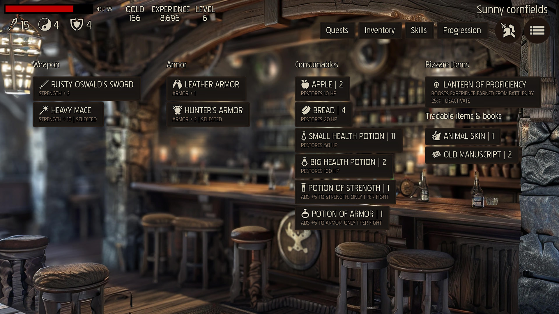- character progression, including stats changes, gaining new attacks, magical spells and the option to manage your inventory by purchasing new weapons and armor