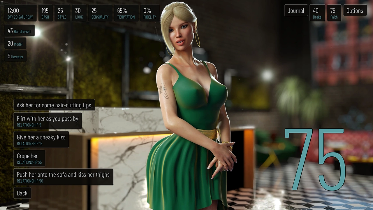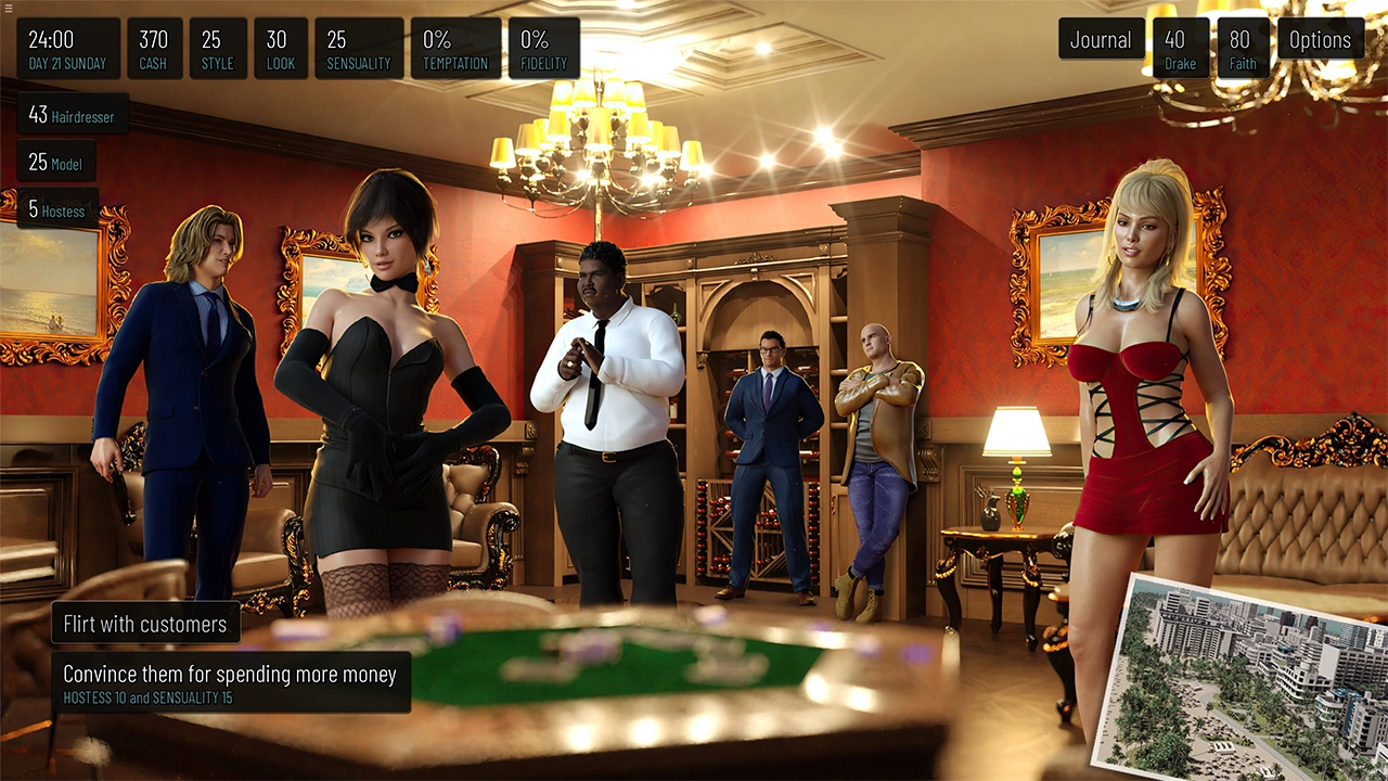Experience a captivating and non-linear story where Eleanor's presence and decisions dramatically shape the destinies of the intriguing characters she encounters in Miami. Depending on your choices, you may complete the game in 6 different ways. It’s up to you if you’re going to stay faithful to your husband or indulge yourself in romancing with other characters.