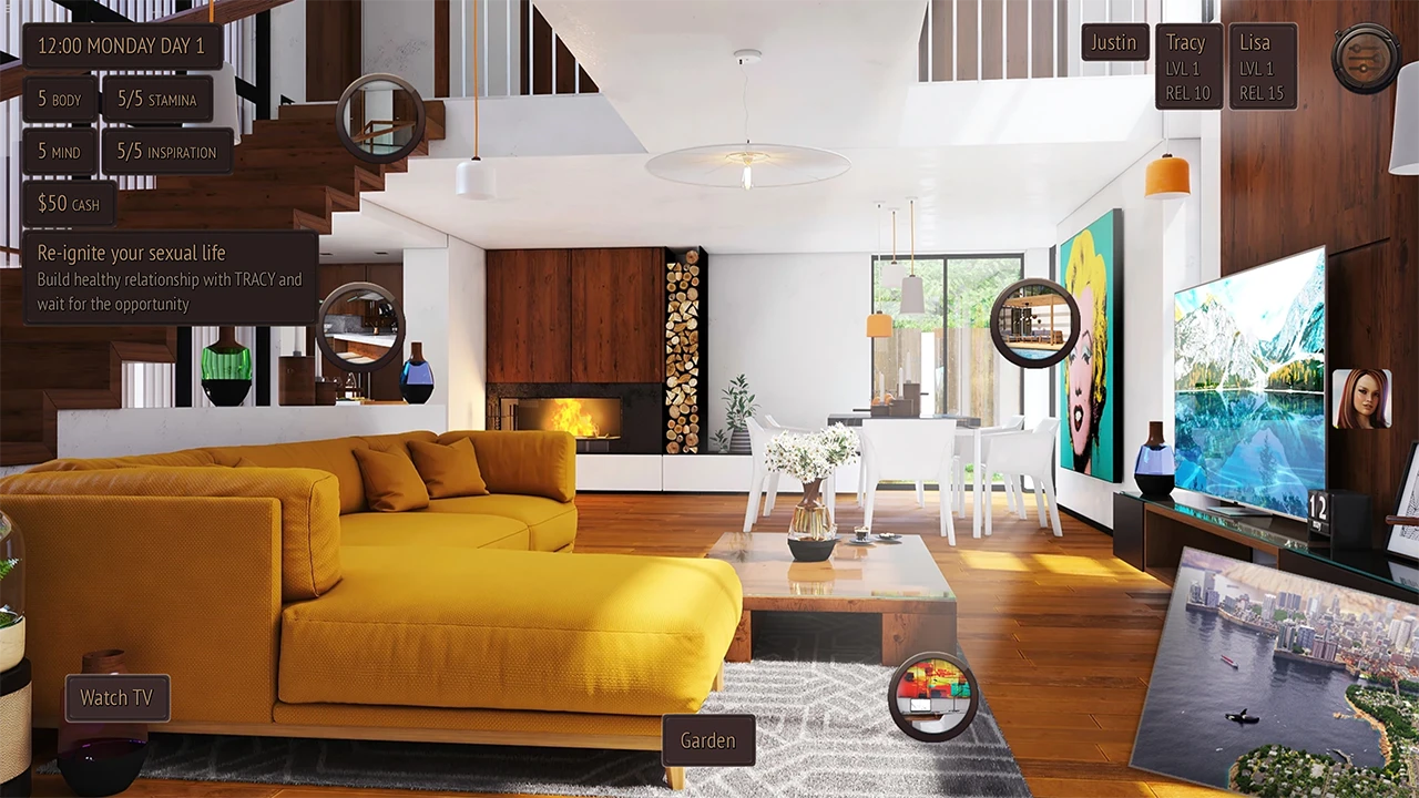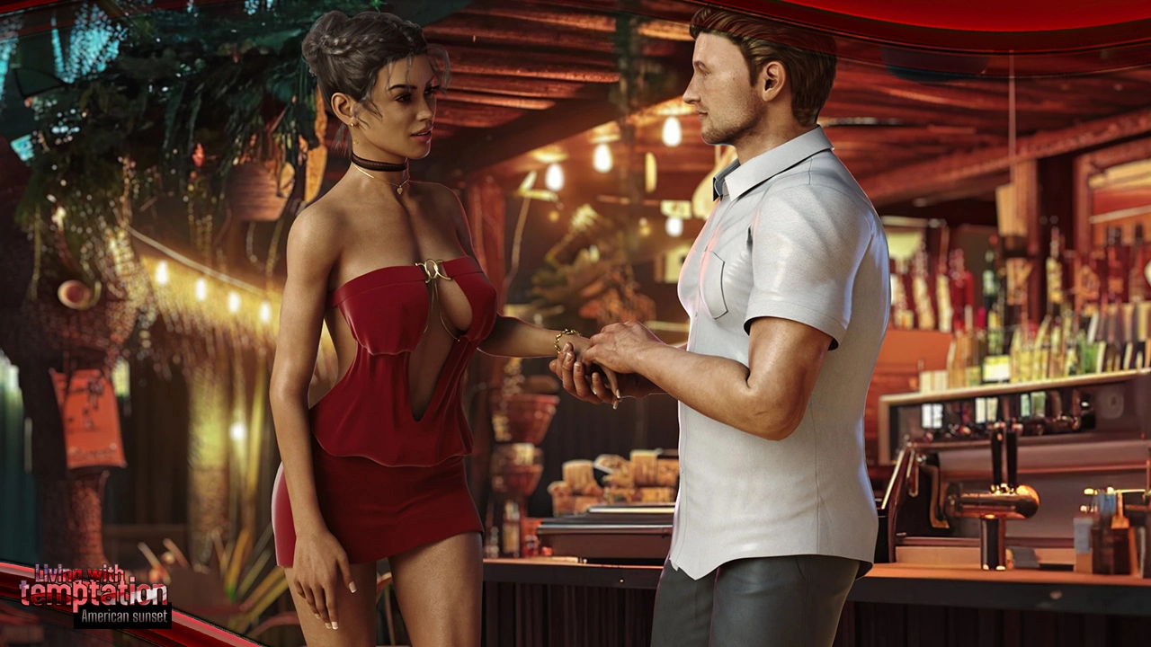 LIVING WITH TEMPTATION is a sensual relationship simulator in which you need to balance your love for Tracy, your wife, and your desire for your nanny, Lisa. The game was initially released in 2013, and then in 2021, we prepared a remodeled version with new renders and more content. Now, over 10 years after the original release, we’re presenting to you its evolution, AMERICAN SUNSET.