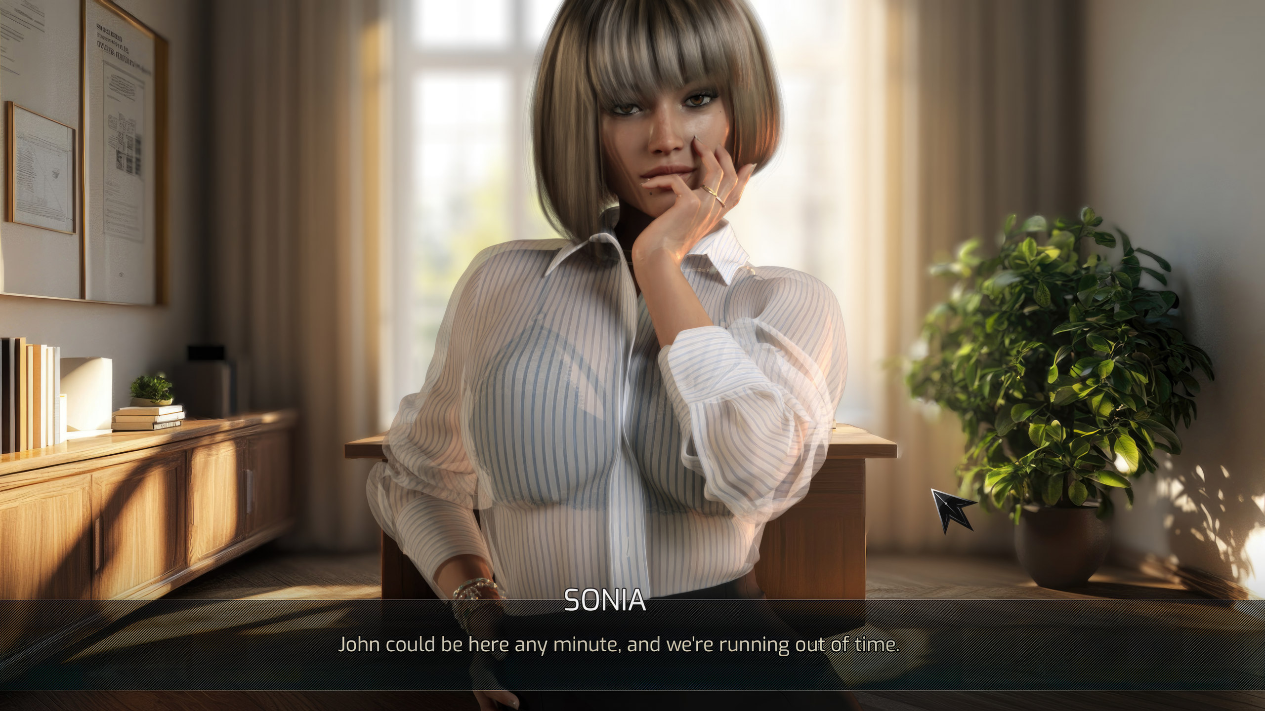 As a new indie game developer working on a new romantic visual novel, you need not only to complete the project but also manage your personal relationships with friends. Be supportive, comfort them during tough times, and maybe even spark a passionate romance that could change everything... with consequences you didn’t expect.