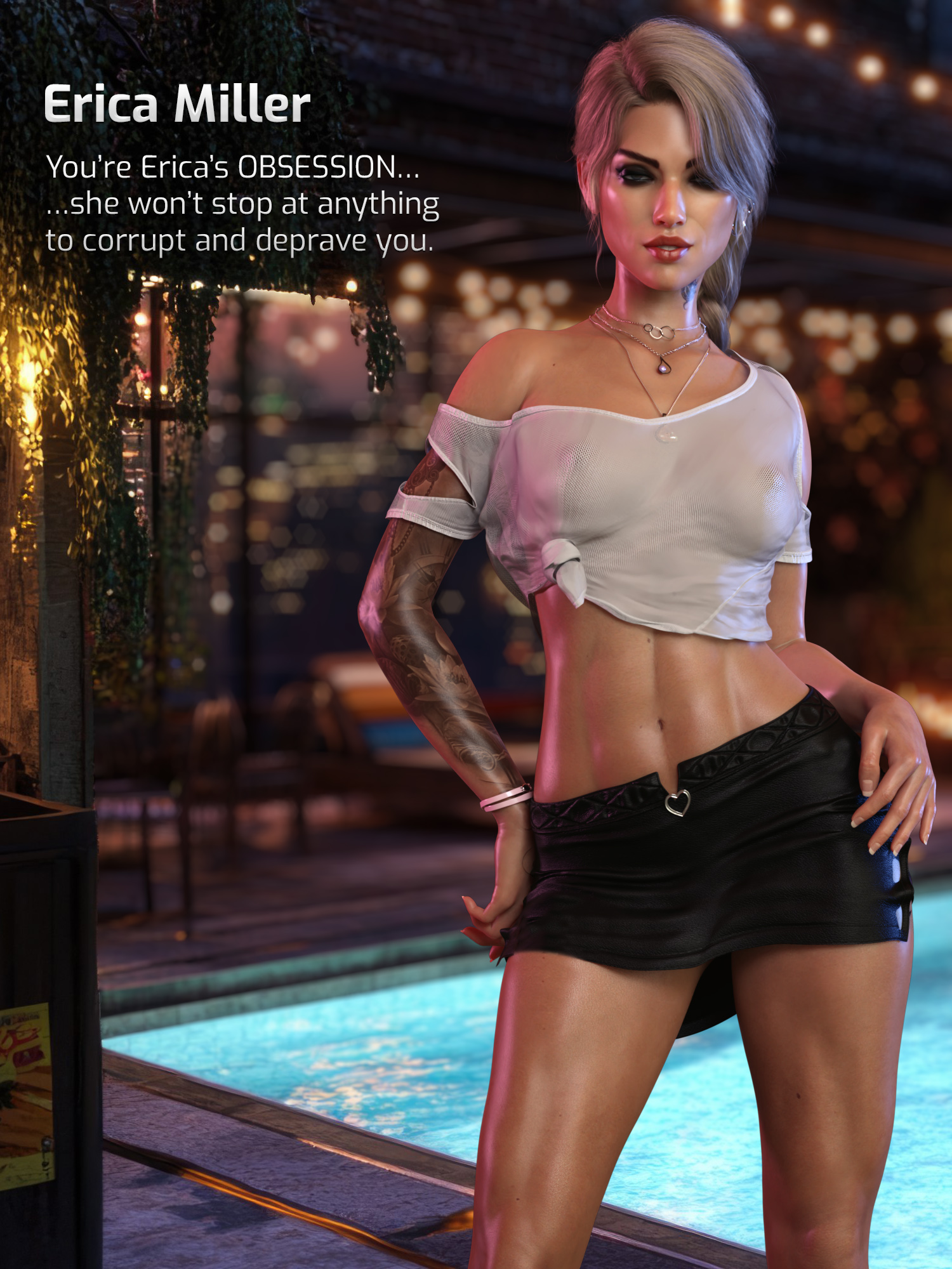 Erica Miller, the fourth woman, is a stunningly beautiful dentist with an irresistible charm. She takes immense pride in her work, but has a tendency to become too familiar with her favorite patients. As the game progresses, we will see that she continues this approach even if the patient is not entirely comfortable with it. Can you break free from that obsessive relationship without any collateral damages? Or you’re going to sacrifice yourself to keep your friends safe?