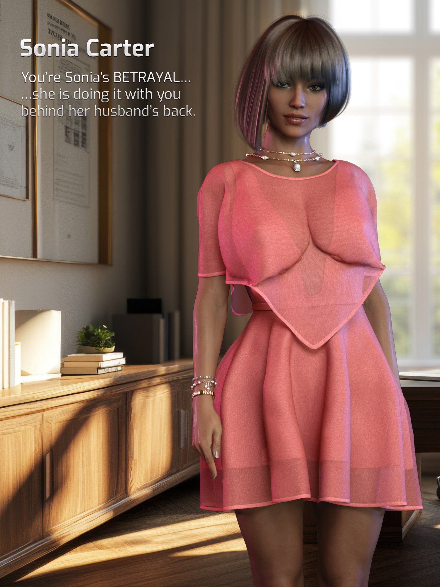 Sonia Carter is a woman admired for her elegance, intelligence, and drive, well-known in the interior design world for her impeccable taste and attention to detail. She also happens to be the wife of your best friend, John. Despite your efforts to end things, you are entangled in a secret affair with Sonia, constantly battling between temptation and loyalty to your closest friend. However, Sonia is not one to take no for an answer, making it even harder for you to break free from this toxic relationship.