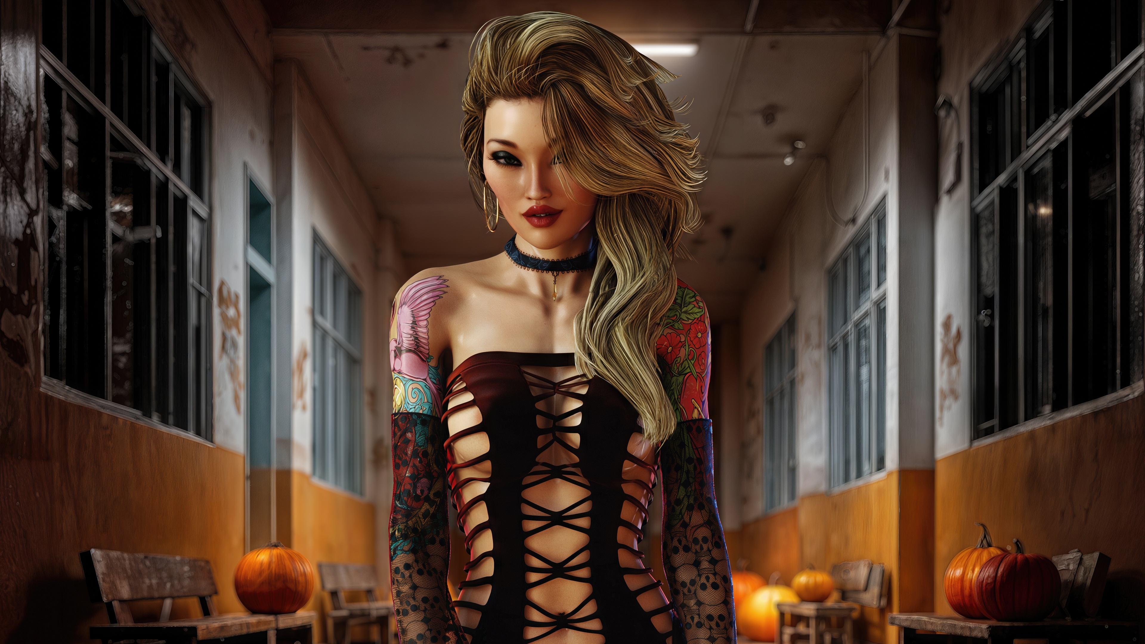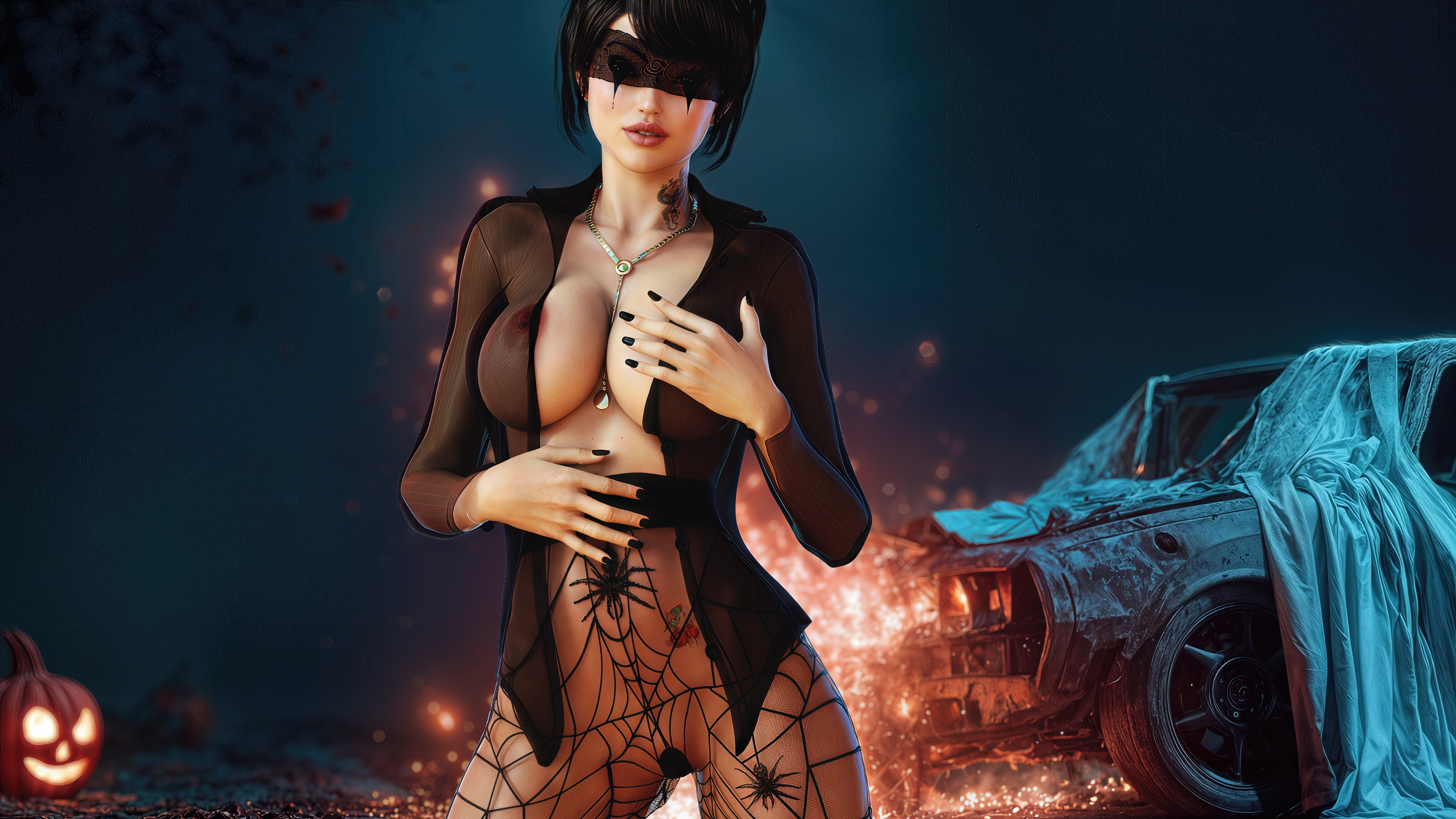 October 29, 2025Halloween’s here, and the girls are ravenous. Moonlight drips over bare skin as they slip into costumes that cling like a second pulse - witch hats tilted low, vampire fangs grazing collarbones, succubus tails curling between thighs. Every curve is painted in shadows and crimson, nipples pebbled beneath fishnet, lace, or nothing at all.