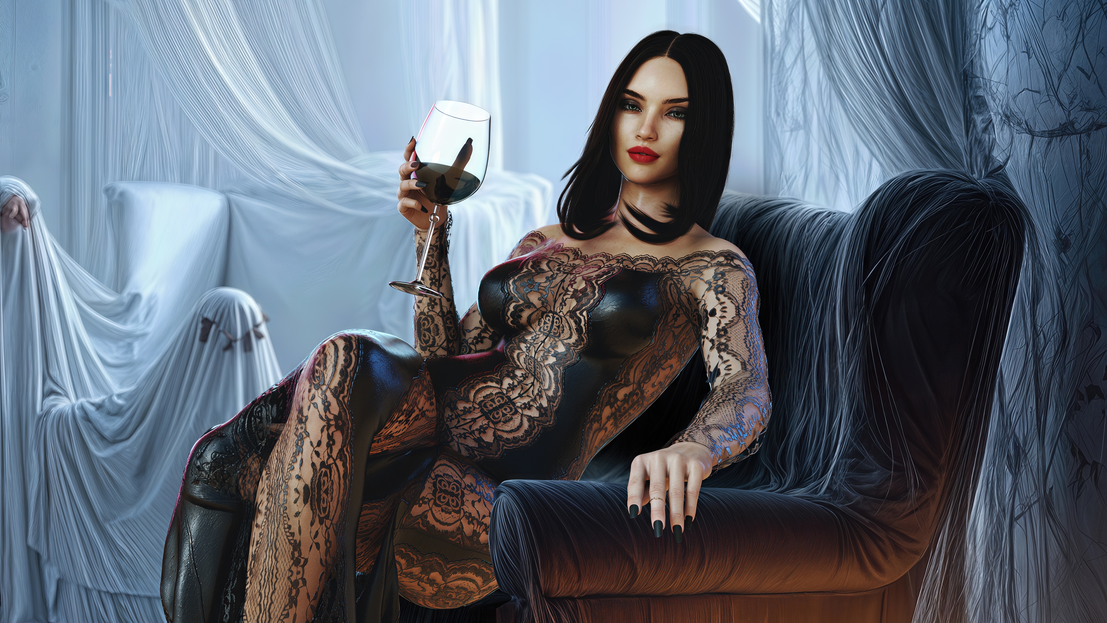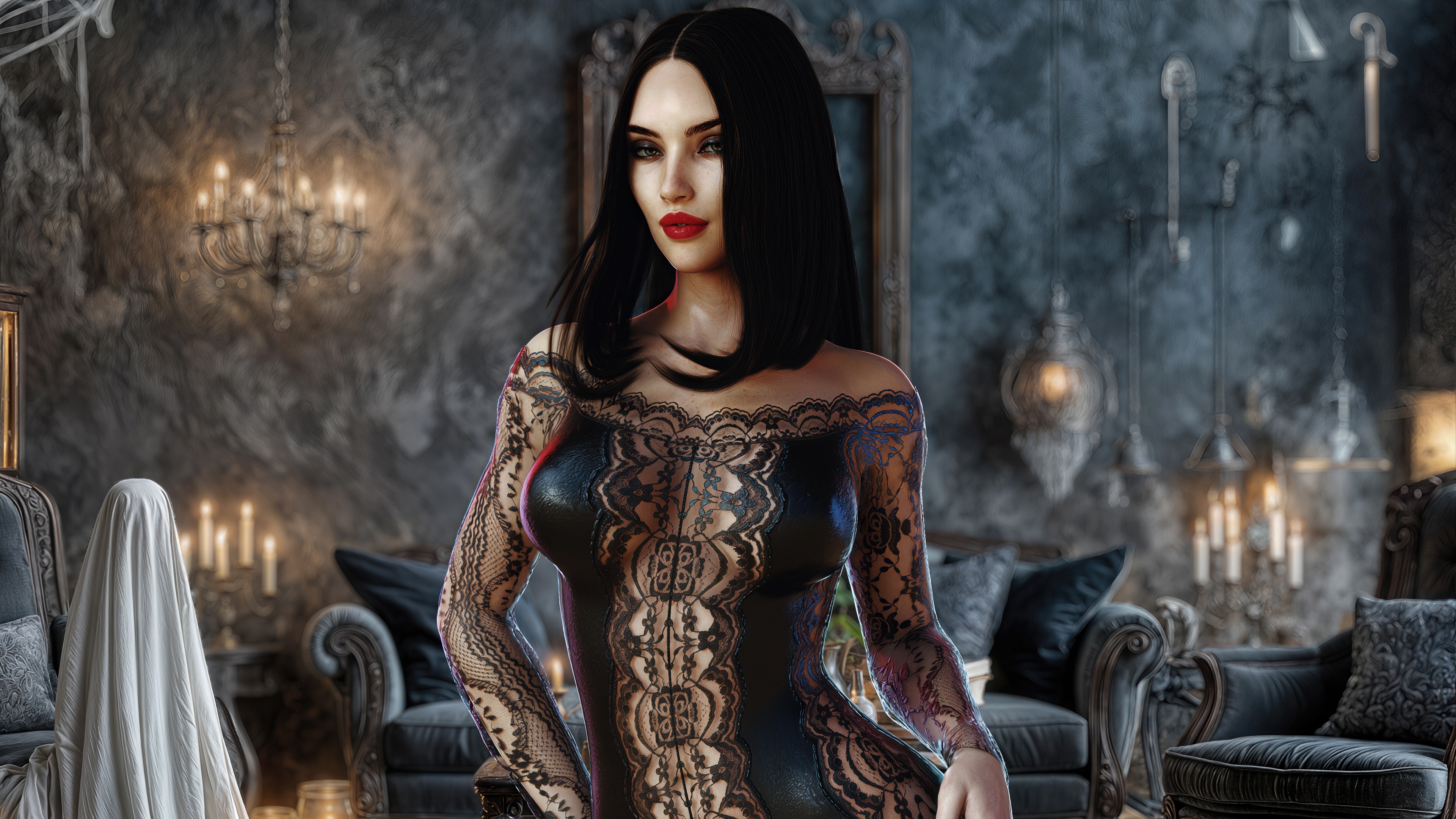 Are you ready to watch them prowl? To see a ghost bride hike her tattered veil and spread pale legs over a tombstone, moonlight glazing the slick between them? Or a werewolf vixen on all fours, fur trim brushing swollen lips as she growls your name?