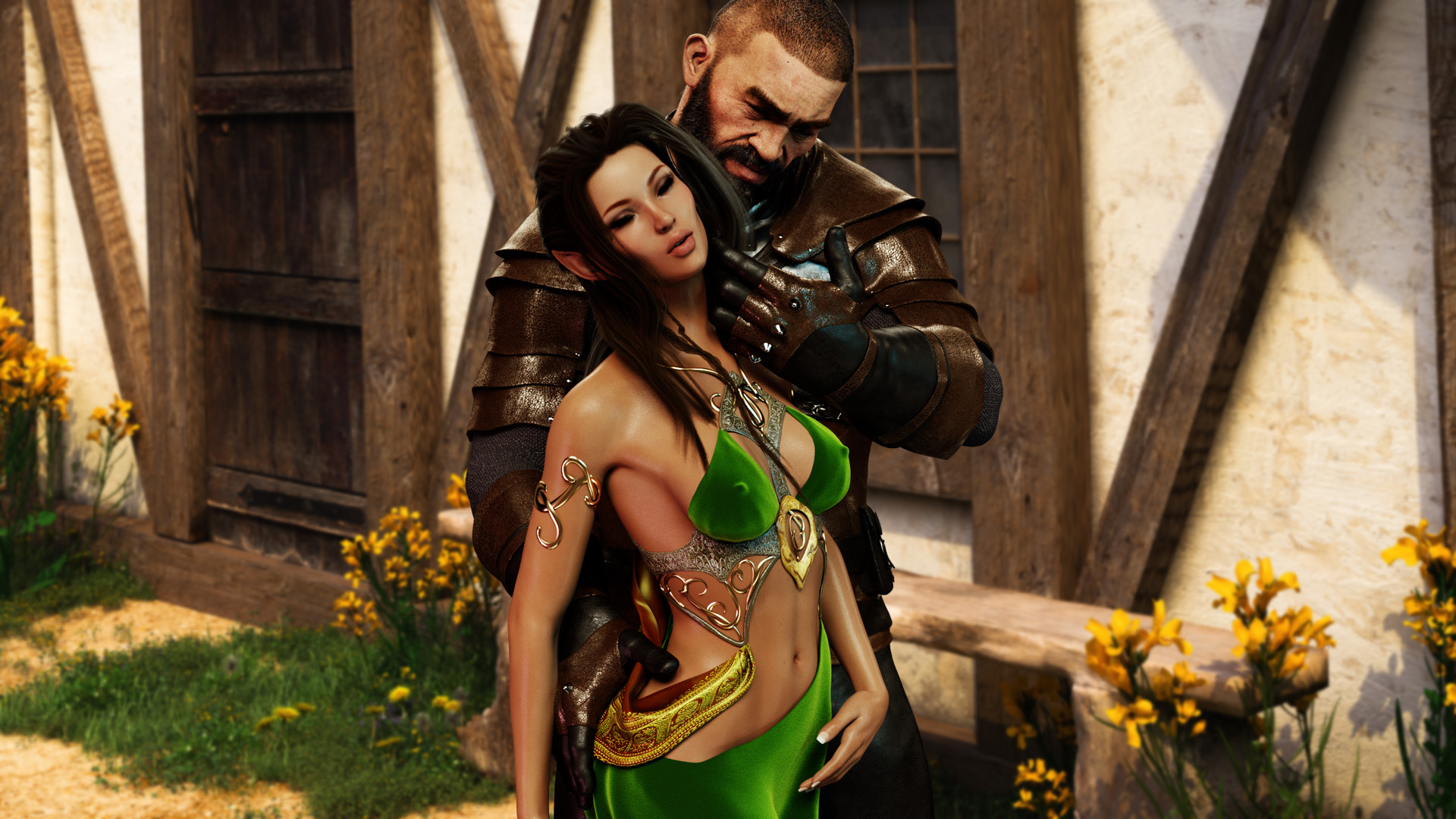My Human, Not Yours - on his return to Teriania's home, Horos is just in time to witness an arrow almost hitting him. As he turns the corner, Horos can hear loud noises coming from Teriania's house. He finds her with her bow drawn, fiercely yelling at Nuala who is gripping two daggers waiting to attack. The two elves were fighting over Horos since only one of them believed in monogamy. Horos steps in and demands that they don't kill each other until he finds a solution.